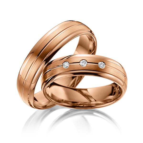 Jedes Paar dieser Trauringe ist mit drei funkelnden Steinbesatz von insgesamt 0,060 ct, tw, si verziert, der durch seine feine weiße Farbe und kleinen Einschlüsse einen Hauch von Luxus und Eleganz verleiht. Von romantischem Roségold bis hin zu klassischem Weißgold bieten wir eine breite Palette von Legierungen, um sicherzustellen, dass Ihre Trauringe perfekt zu Ihrem Stil und Ihrer Persönlichkeit passen.