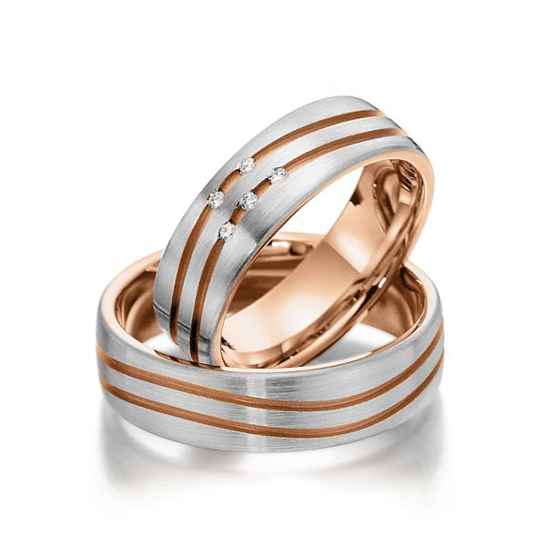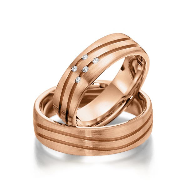 Jedes Paar dieser Trauringe ist mit drei funkelnden Steinbesatz von insgesamt 0,050 ct, tw, si verziert, der durch seine feine weiße Farbe und kleinen Einschlüsse einen Hauch von Luxus und Eleganz verleiht. Von romantischem Roségold bis hin zu klassischem Weißgold bieten wir eine breite Palette von Legierungen, um sicherzustellen, dass Ihre Trauringe perfekt zu Ihrem Stil und Ihrer Persönlichkeit passen.