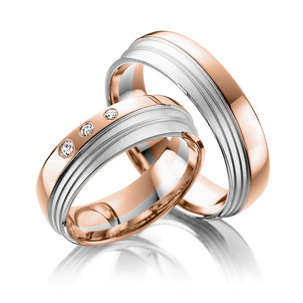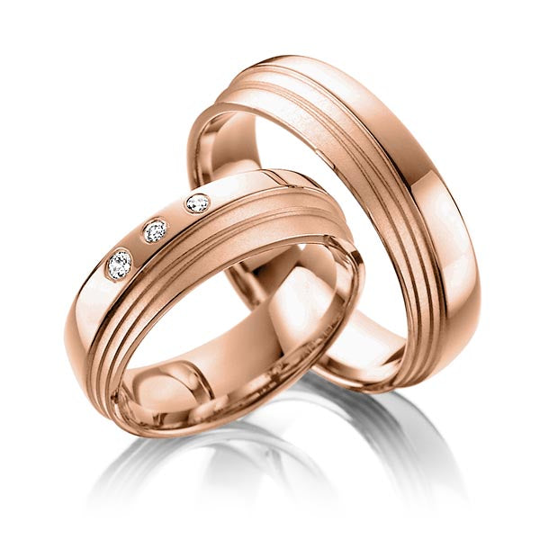 Jedes Paar dieser Trauringe ist mit drei funkelnden Steinbesatz von insgesamt 0,060 ct, tw, si verziert, der durch seine feine weiße Farbe und kleinen Einschlüsse einen Hauch von Luxus und Eleganz verleiht. Von romantischem Roségold bis hin zu klassischem Weißgold bieten wir eine breite Palette von Legierungen, um sicherzustellen, dass Ihre Trauringe perfekt zu Ihrem Stil und Ihrer Persönlichkeit passen.