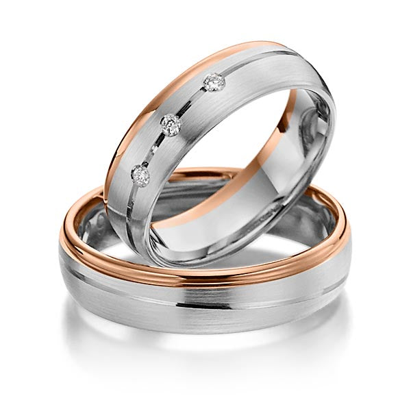 Jedes Paar dieser Trauringe ist mit drei funkelnden Steinbesatz von insgesamt 0,060 ct, tw, si verziert, der durch seine feine weiße Farbe und kleinen Einschlüsse einen Hauch von Luxus und Eleganz verleiht. Von romantischem Roségold bis hin zu klassischem Weißgold bieten wir eine breite Palette von Legierungen, um sicherzustellen, dass Ihre Trauringe perfekt zu Ihrem Stil und Ihrer Persönlichkeit passen.