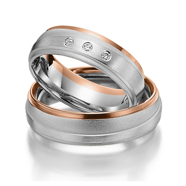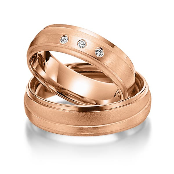 Jedes Paar dieser Trauringe ist mit drei funkelnden Steinbesatz von insgesamt 0,060 ct, tw, si verziert, der durch seine feine weiße Farbe und kleinen Einschlüsse einen Hauch von Luxus und Eleganz verleiht. Von romantischem Roségold bis hin zu klassischem Weißgold bieten wir eine breite Palette von Legierungen, um sicherzustellen, dass Ihre Trauringe perfekt zu Ihrem Stil und Ihrer Persönlichkeit passen.
