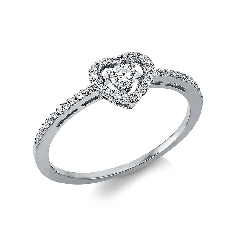 Ring 18 kt WG Herz, 43 Brillanten 0,22 ct, TW-si, H:7,3 mm, B:6,5 mm, Weite:54