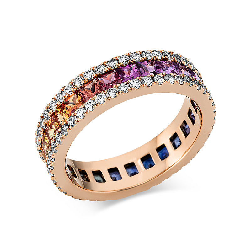 Ring 18 kt RG, 88 Brillanten 1,04 ct, TW-vsi, 25 Saphire 2,86 ct fancy, Weite:53