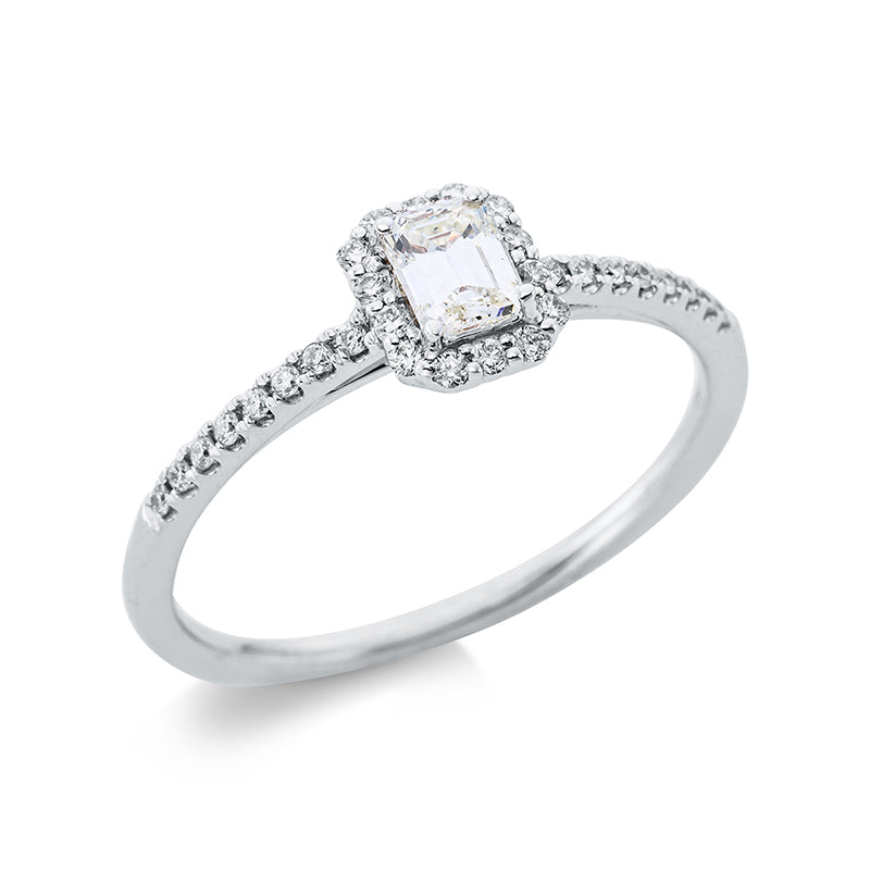 Ring 18 kt WG, 1 Sm.schliff 0,23 ct, TW-si, 30 Brillanten 0,14 ct, TW-si, Weite:53