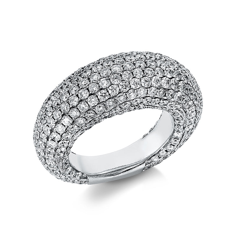 Ring 18 kt WG, 329 Brillanten 6,14 ct, W-si, B:9,1 mm, Weite:54