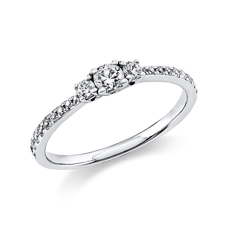 Ring 4er-Krappe 14 kt WG, 1 Brill. 0,20 ct, TW-si, 20 Brillanten 0,22 ct, TW-si, Weite:47