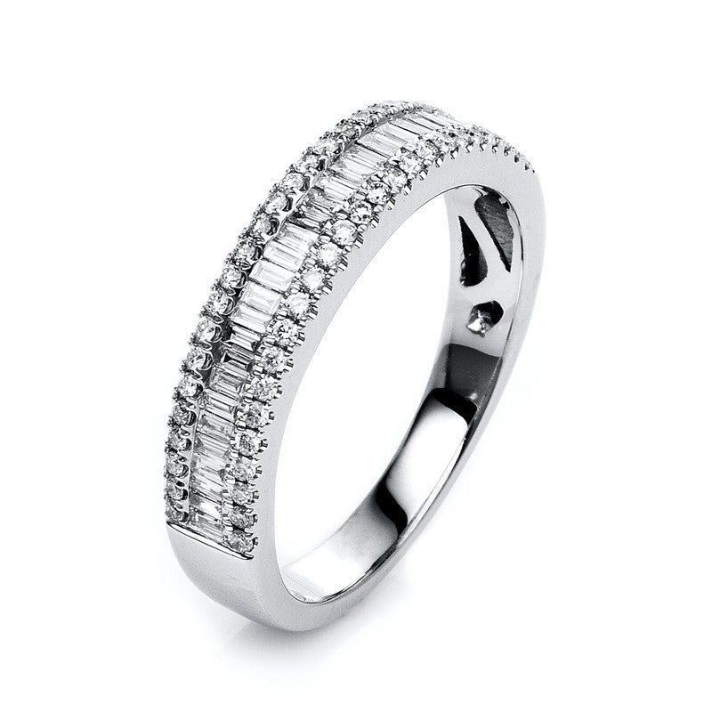 Ring 18 kt WG, 50 Brillanten 0,20 ct, TW-si, 32 Baguette 0,20 ct, TW-si, Weite:54