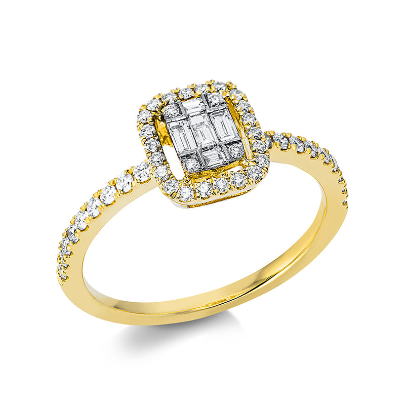 Ring 18 kt GG+WG, 5 Baguette 0,10 ct, TW-si, 44 Brillanten 0,31 ct, TW-si, H:7,6 mm, B:8,5 mm, Weite:54