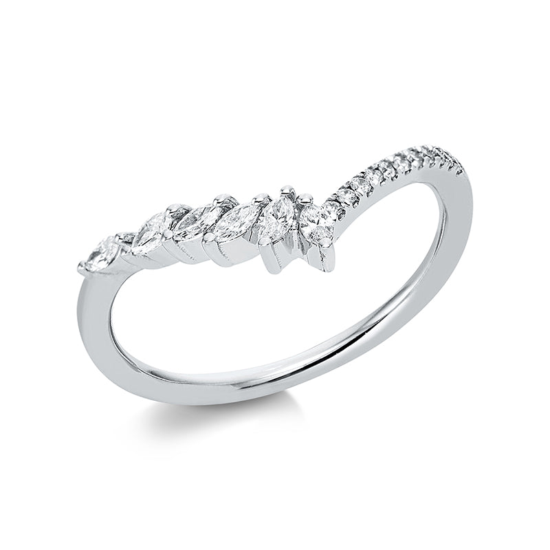 Кольцо 18 карат WG, 6 наветов 0,17 карат, TW-si, 11 бриллиантов классической огранки 0,06 карат, TW-si, ширина: 54